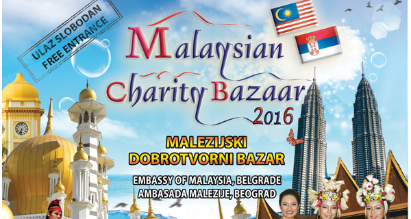 Već četvrti put Ambasada Malezije u Beogradu ogranizuje svoj godišnji Malezijski dobrotvorni bazar, ove godine pod sloganom „Svaka pomoć znači“. Namenjen je za celu porodicu, a ulaz je besplatan što ga čini jedinstvenim događajem te vrste u Srbiji. Manifestacija će se održati u subotu 4. juna 2016. godine u Ambasadi Malezije, Krajiška 2, od 10 do 18 časova.